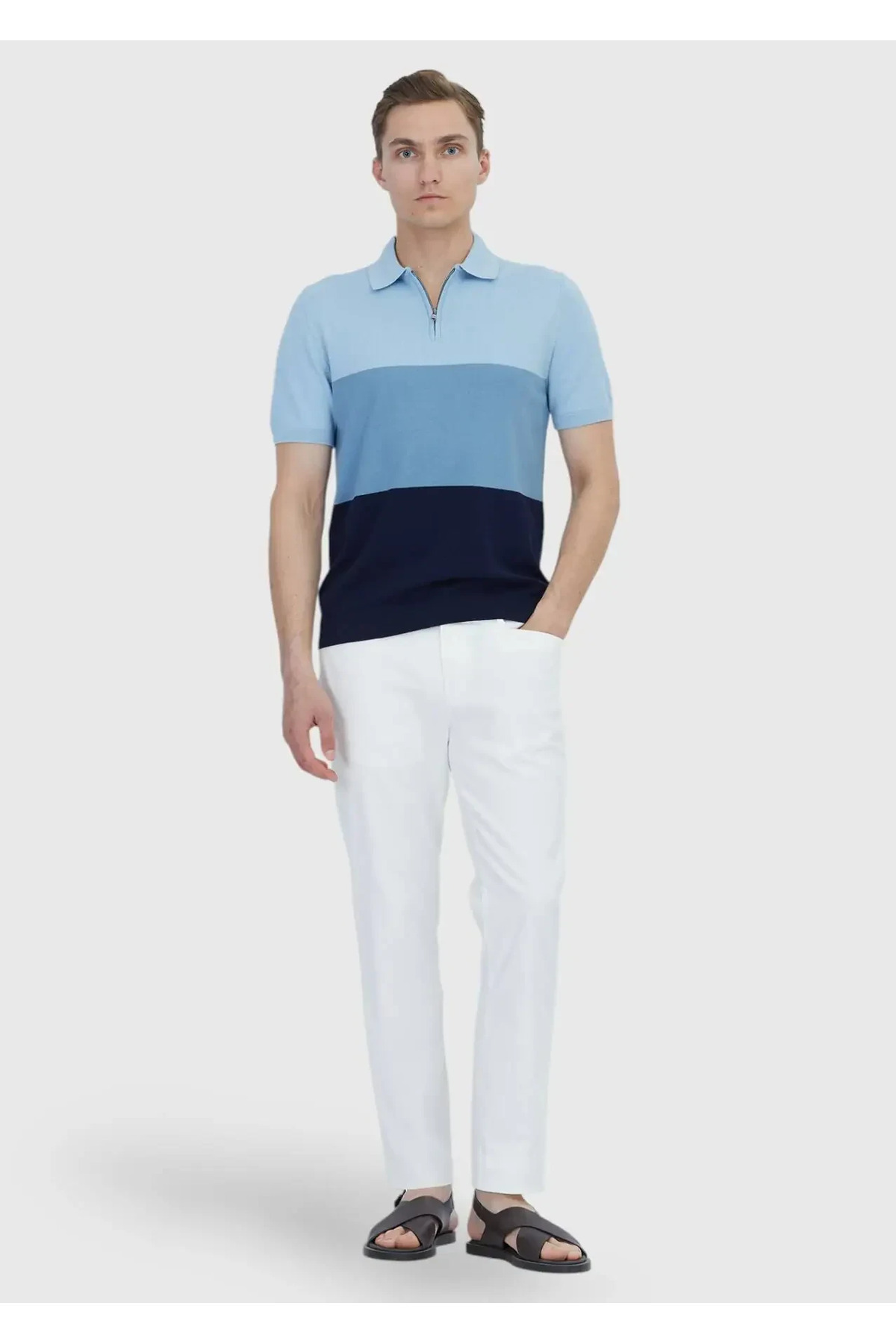 رمزی لباس بافتنی ترکیبی نخی راه راه یقه آبی آبی روشن