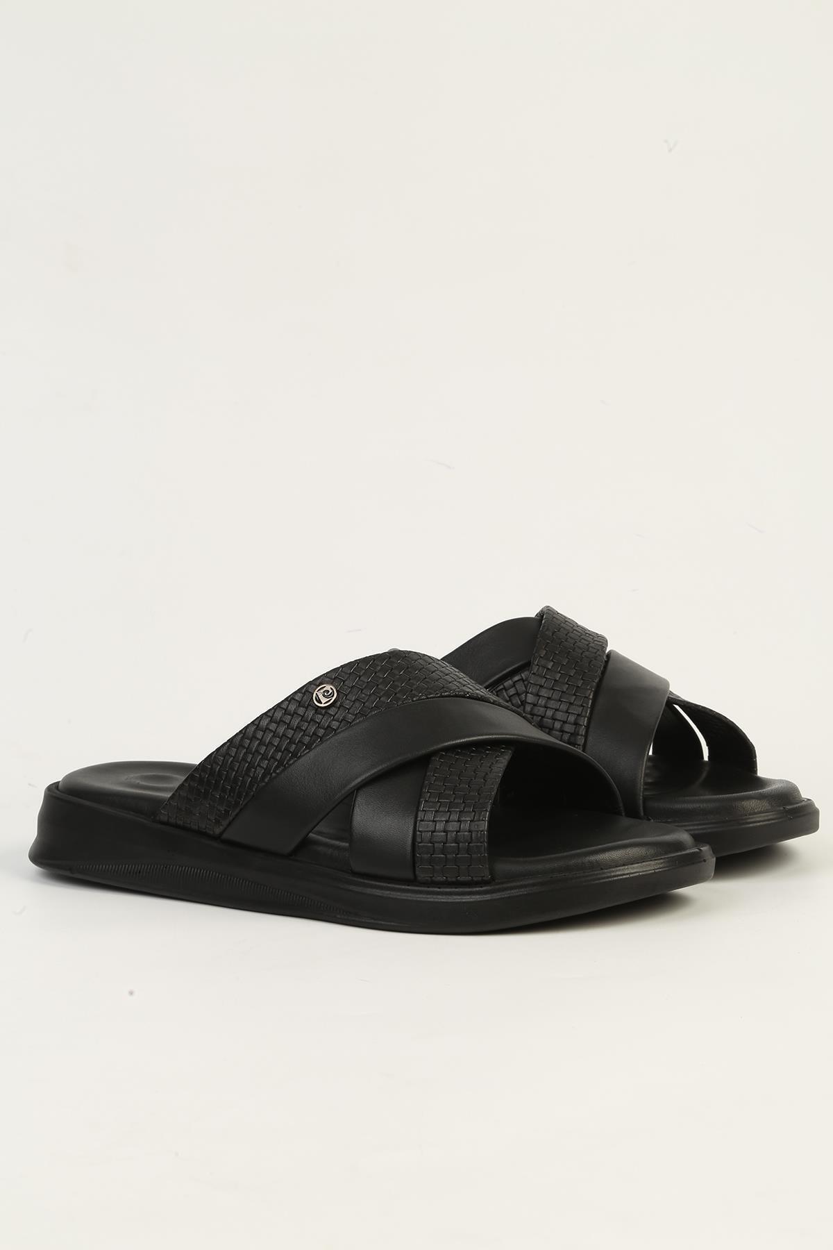 پیر کاردین دمپایی مردانه مشکی چرم اصل PC-7336