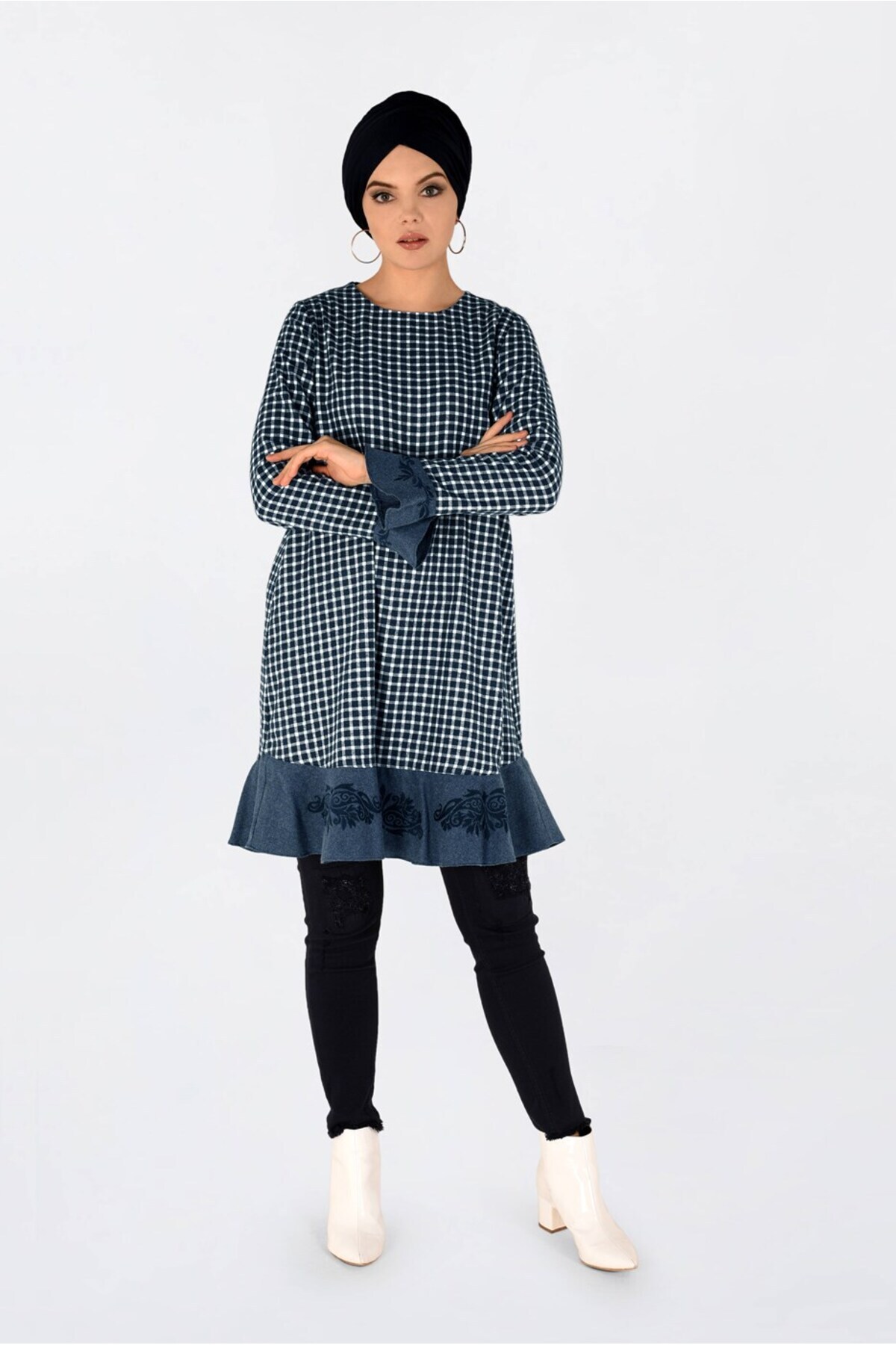آلوینا تونیک طرح‌دار، چین‌دار و گلدوزی‌شده طرح دندان شکاری کد ۴۷۹۳