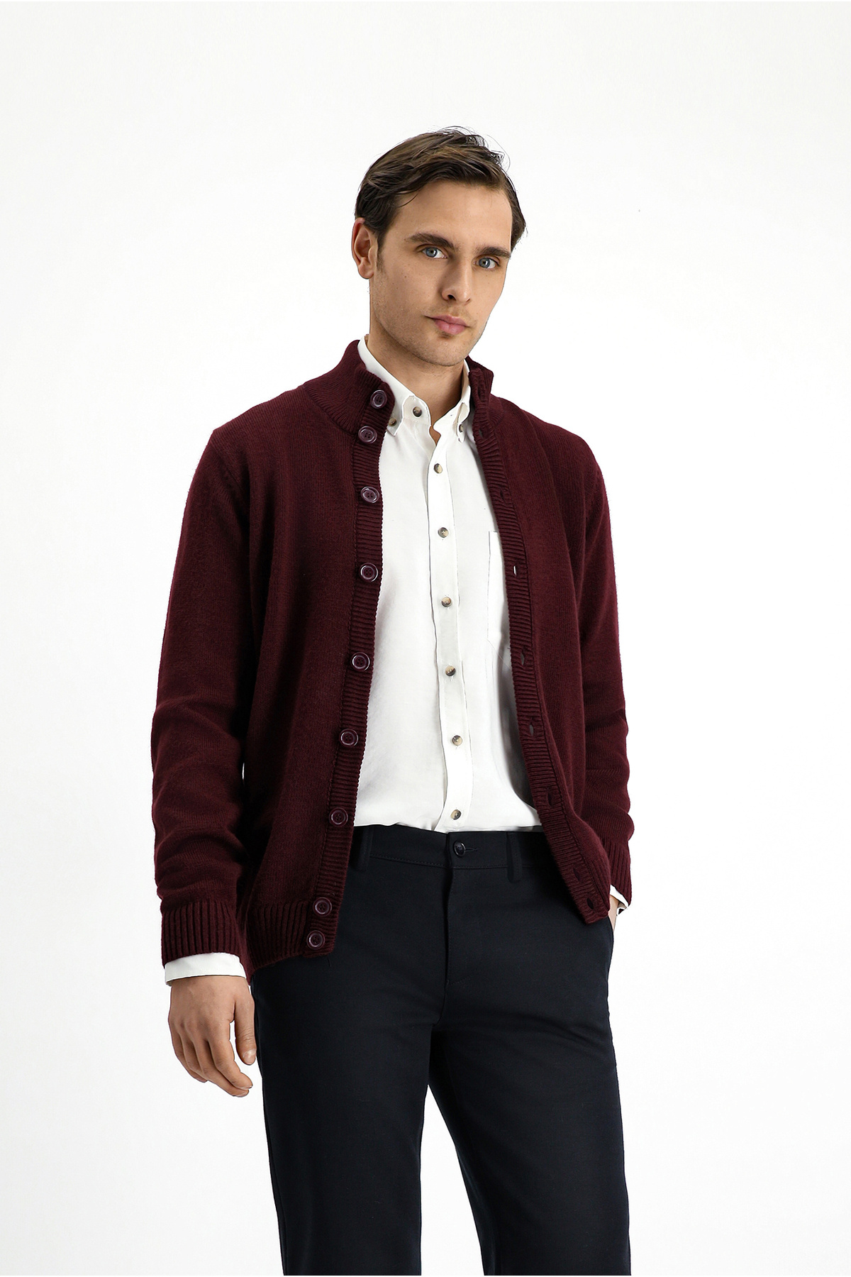بوراتی ژاکت کش باف پشمی مردانه یقه V شکل دکمه دار پنبه ای منظم 456205