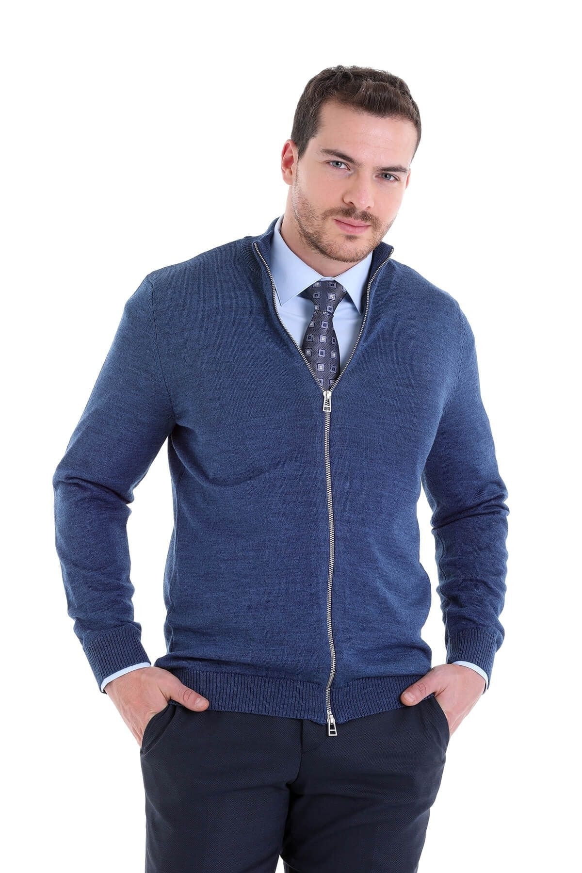 حاتم اوغلو ژاکت بافتنی زیپ دار پشمی نیم یقه یقه ساده