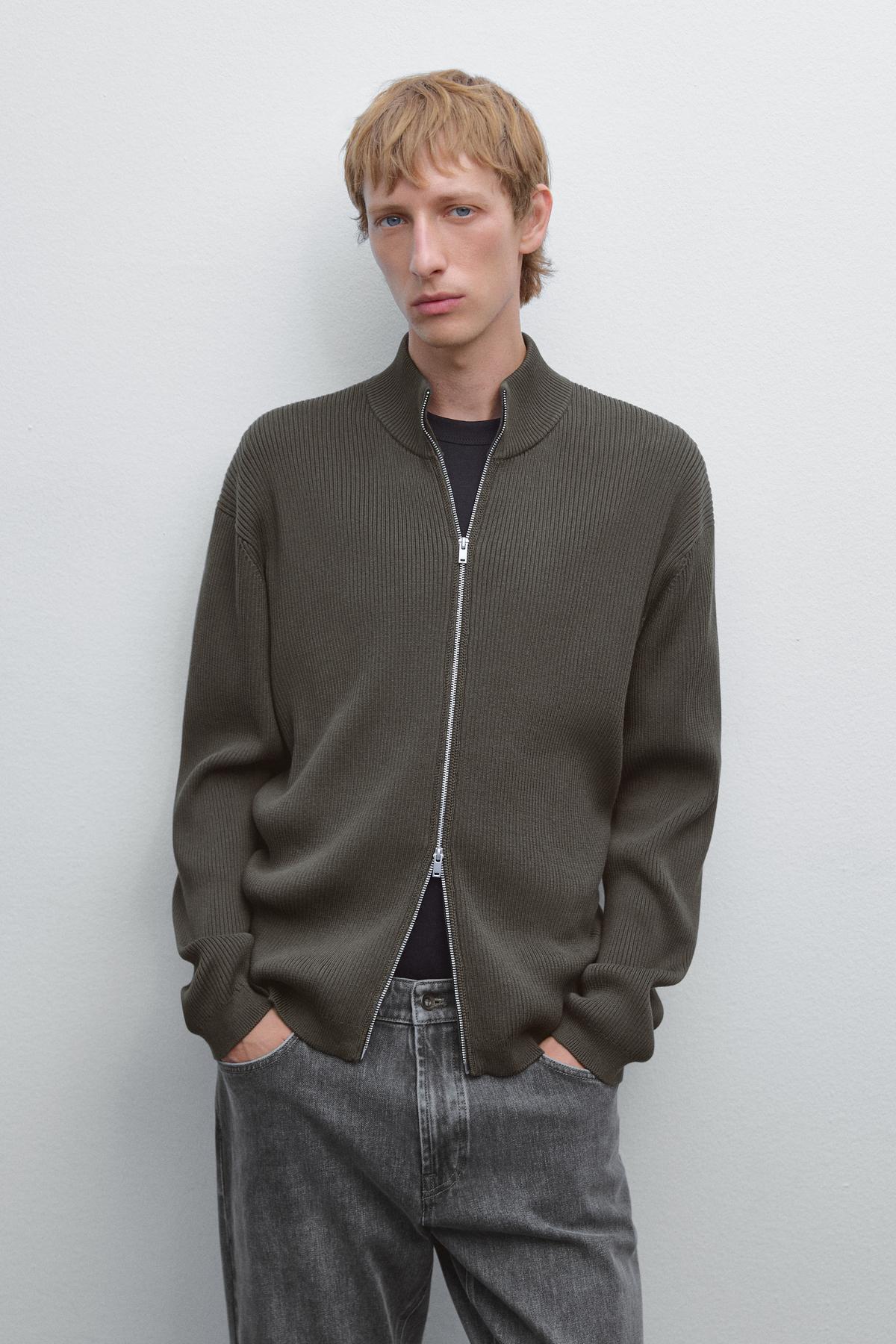 ماسیمو دوتی ژاکت کش باف پشمی 100% پنبه ای زیپ دار