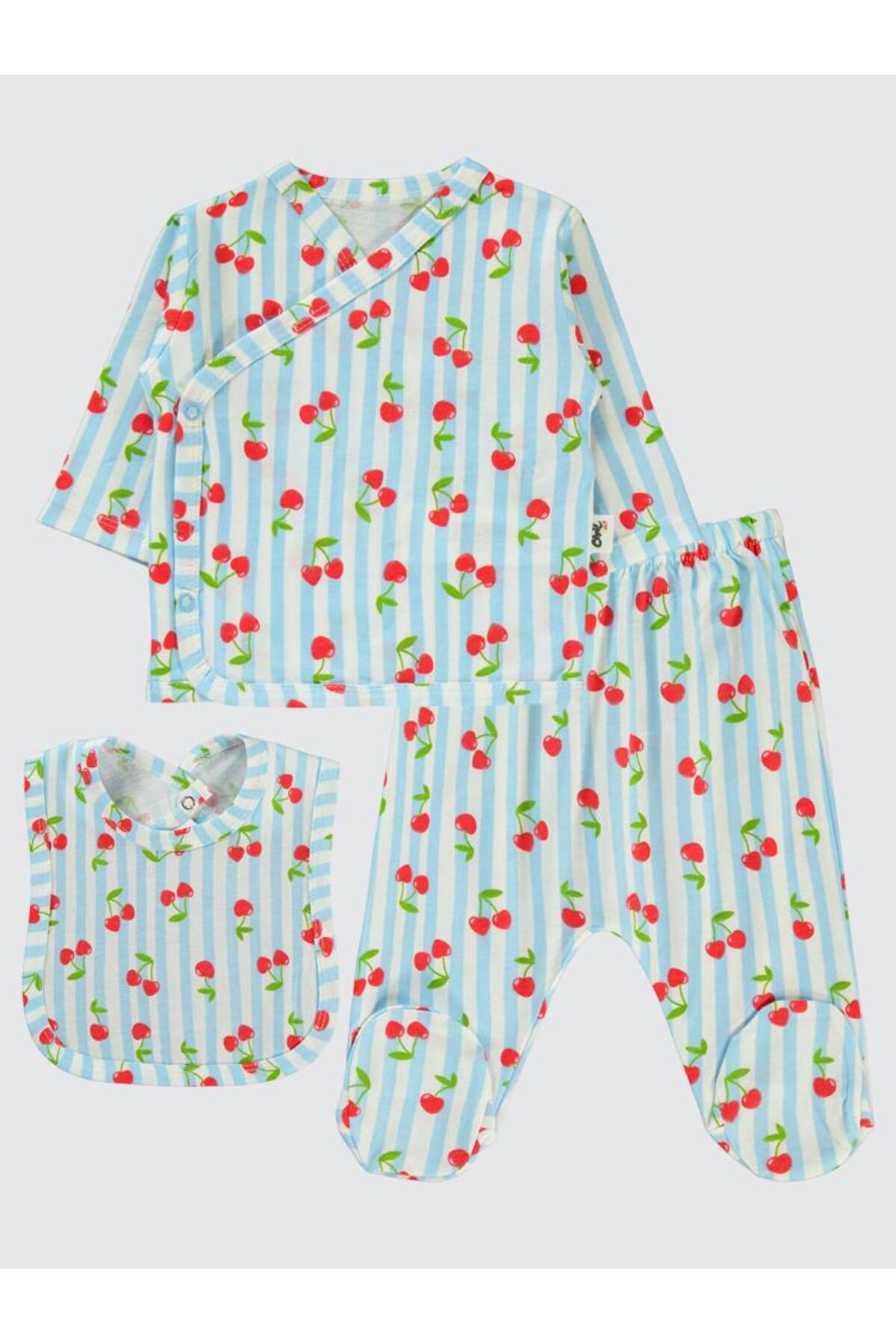 سیویل بیبی ست بادی طرح گیلاسی راه راه - آبی 0-1 ماه