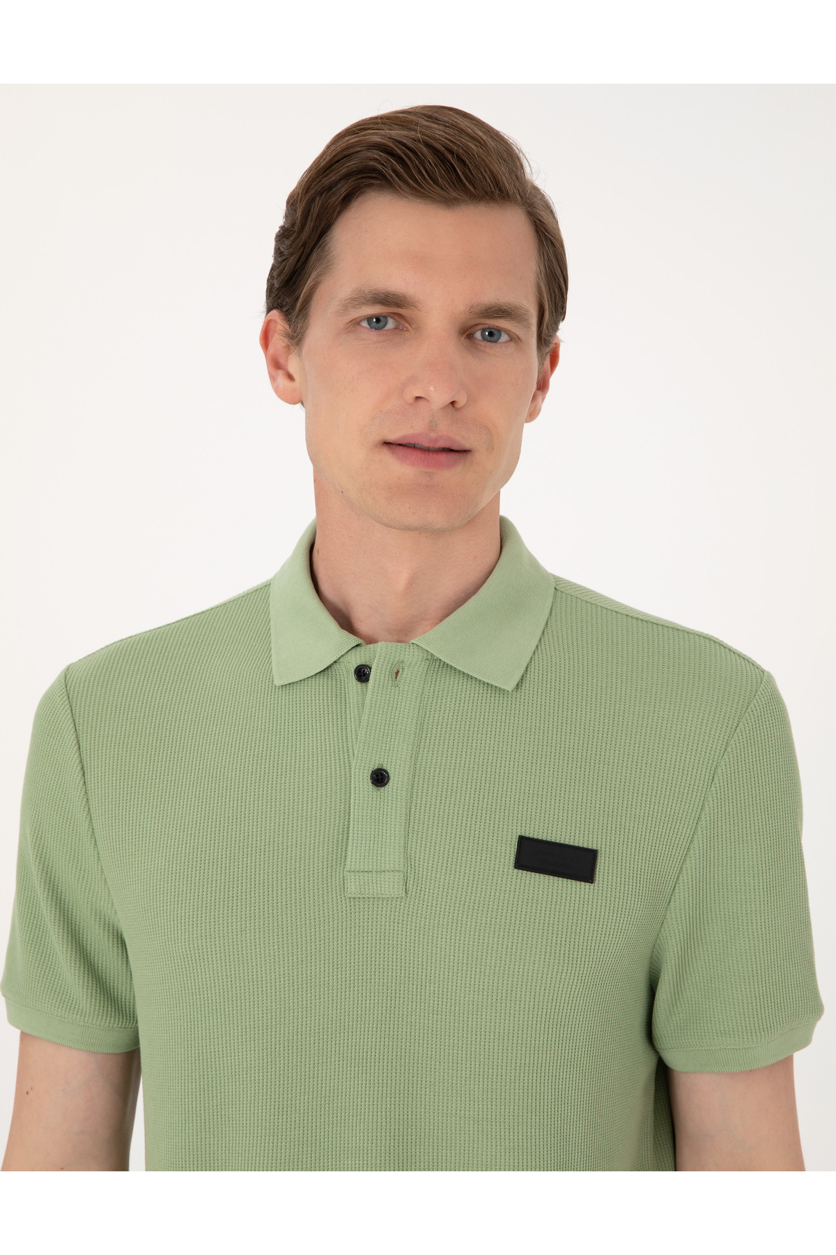 پیر کاردین تی شرت یقه چوگان بافت بافت سبز اسلیم فیت 50309959-VR016