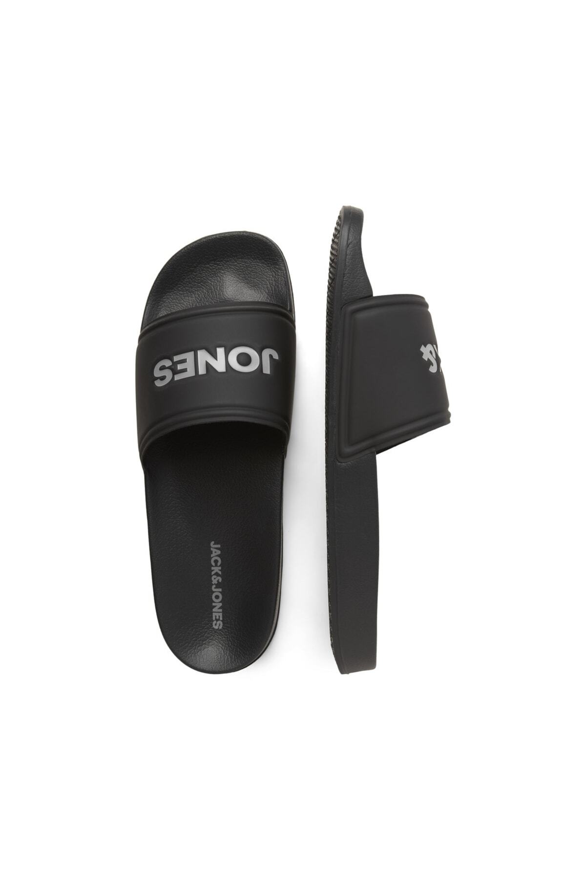 جک اند جونز دمپایی مشکی زیره راحت و شیک لوگوی برند مردانه مناسب برای استفاده روزانه و ساحلی 1225124