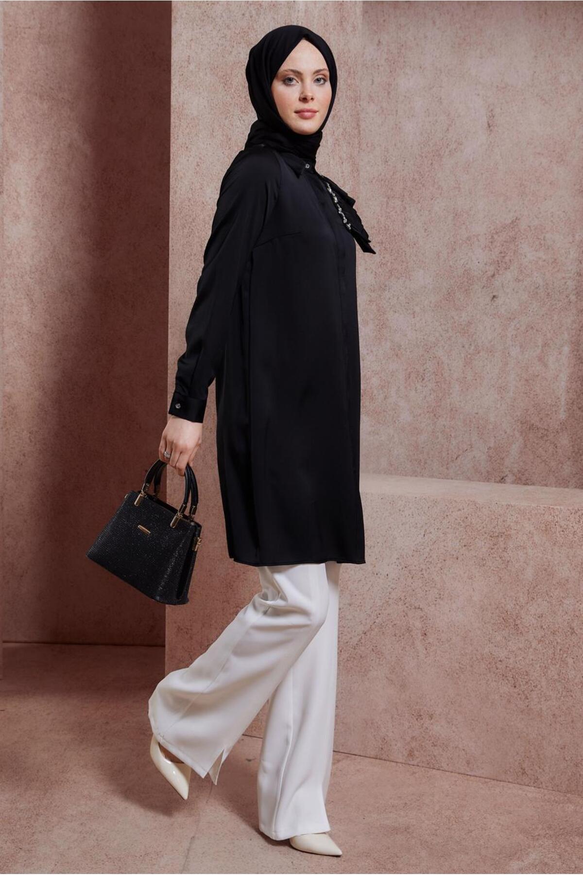 آلوینا تونیک ساتن طرح چین‌دار ریزبافت کد ۴۳۸۶۸