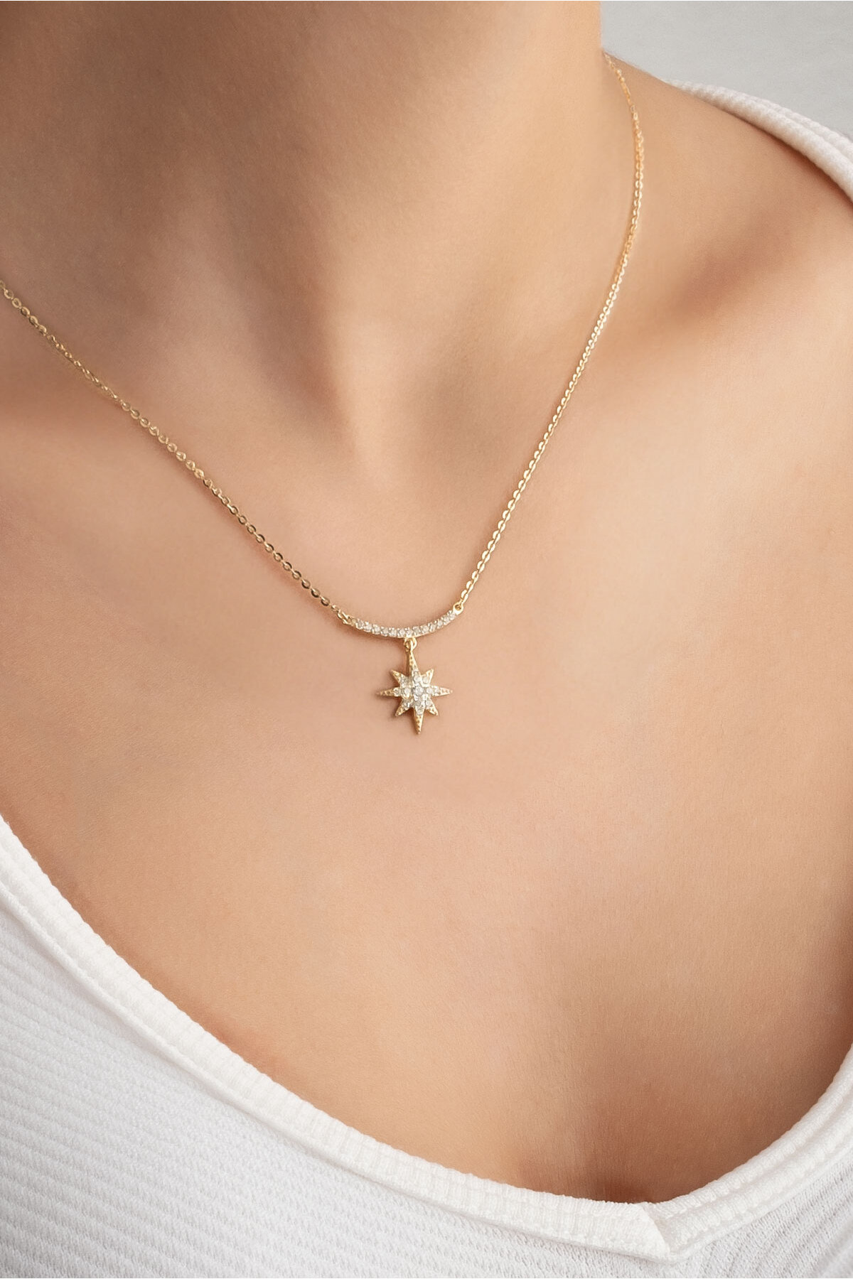 گردنبند مینیمال نقره 45 سانتی متری با روکش طلای سفید 18 عیار لاکی استار سو شیک زنانه | So Chic 5153430199