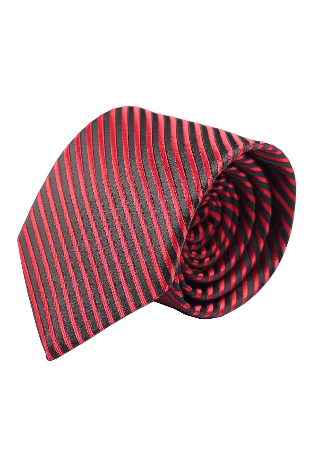 کراوات و دستمال راه راه قرمز و مشکی 7.5 سانتی متری