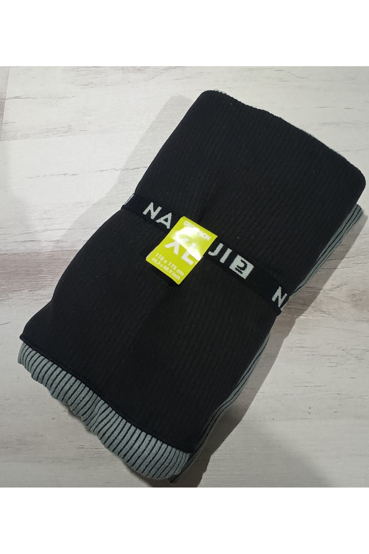دکتلون حوله میکروفیبر نبیجی - اندازه Xl - راه راه مشکی/خاکستری - 110 × 175 سانتی متر