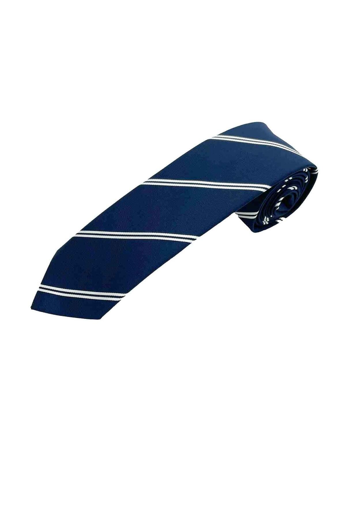 کراوات راه راه آبی و سفید سرمه ای