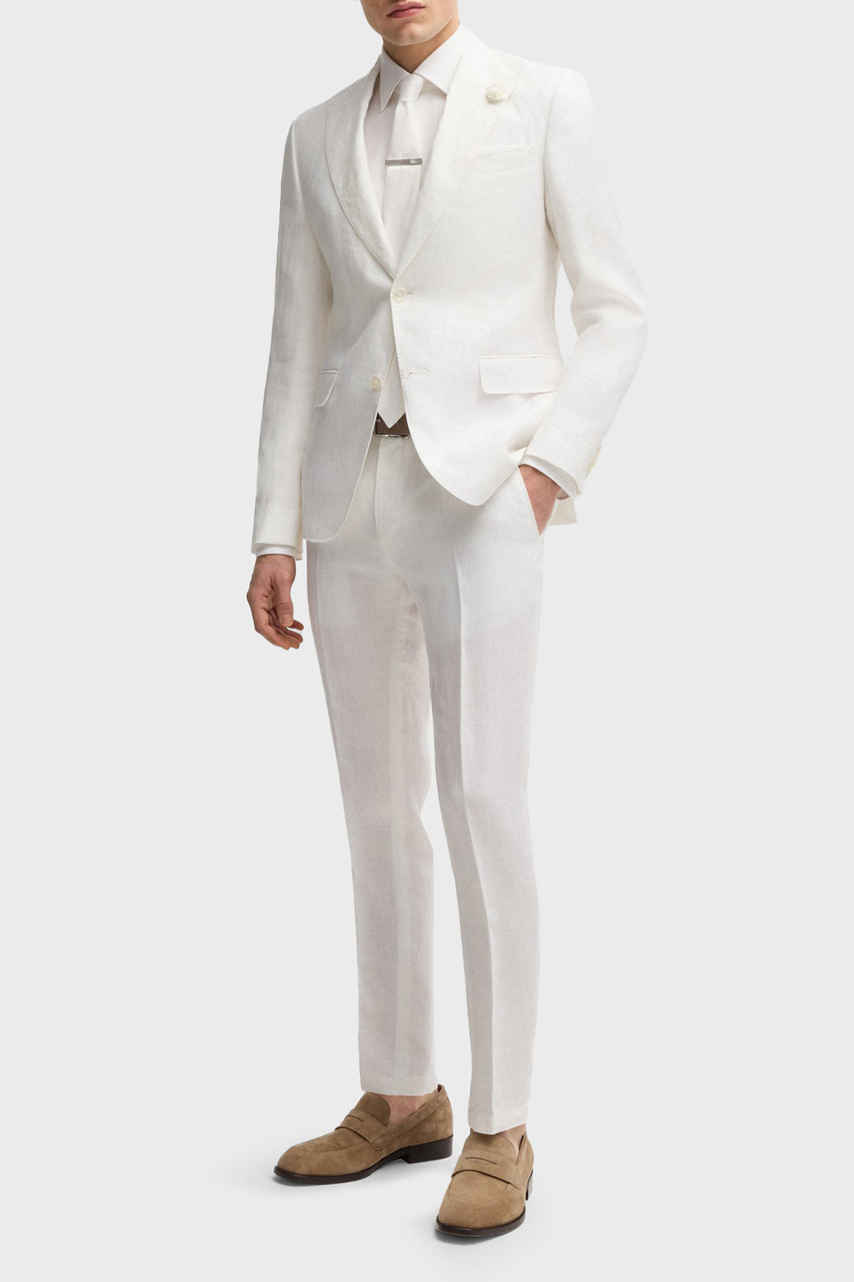 باس 100% کتانی اسلیم فیت شلوار صاف کمر بلند شلوار مردانه 50540518 100