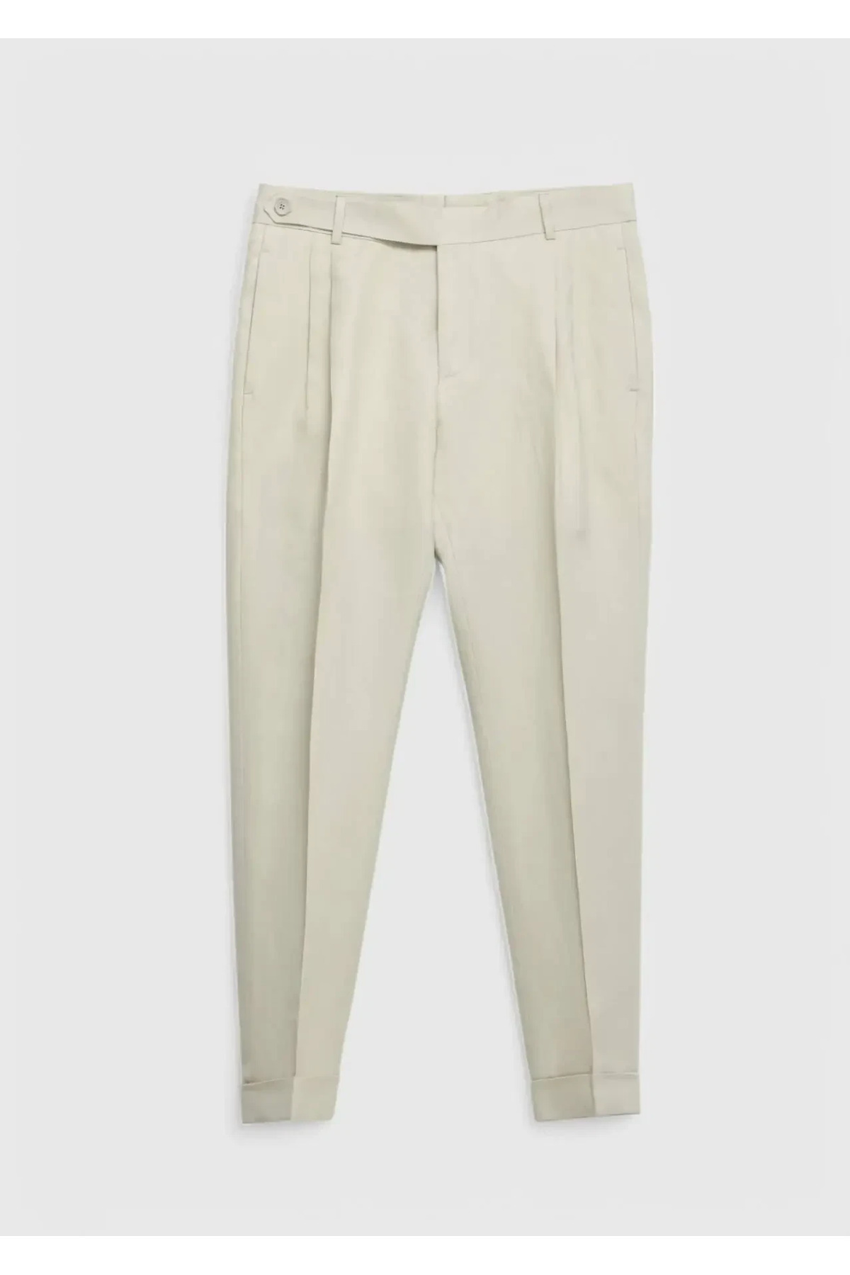 رمزی کت و شلوار کتانی 100% باریک بدون وزن ساده بژ