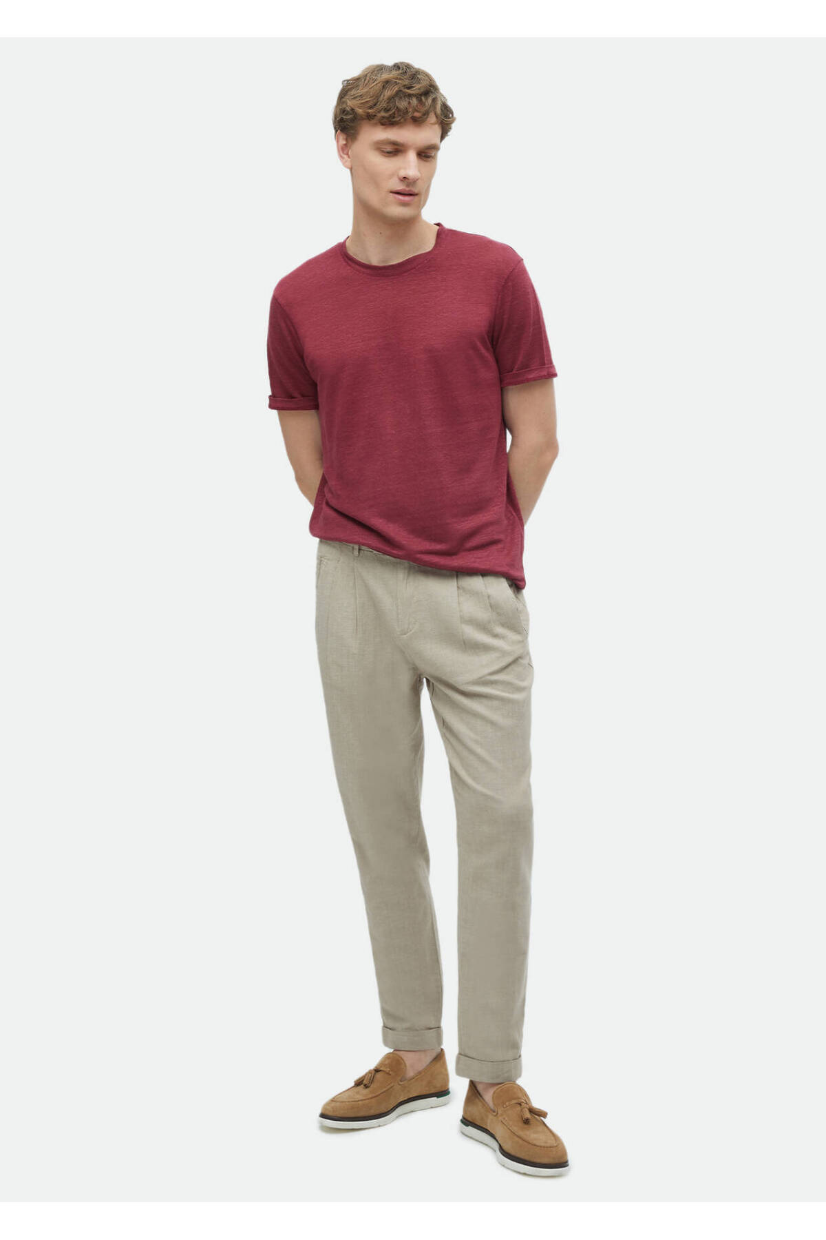 رمزی تی شرت یقه خدمه 100% کتانی قرمز ساده