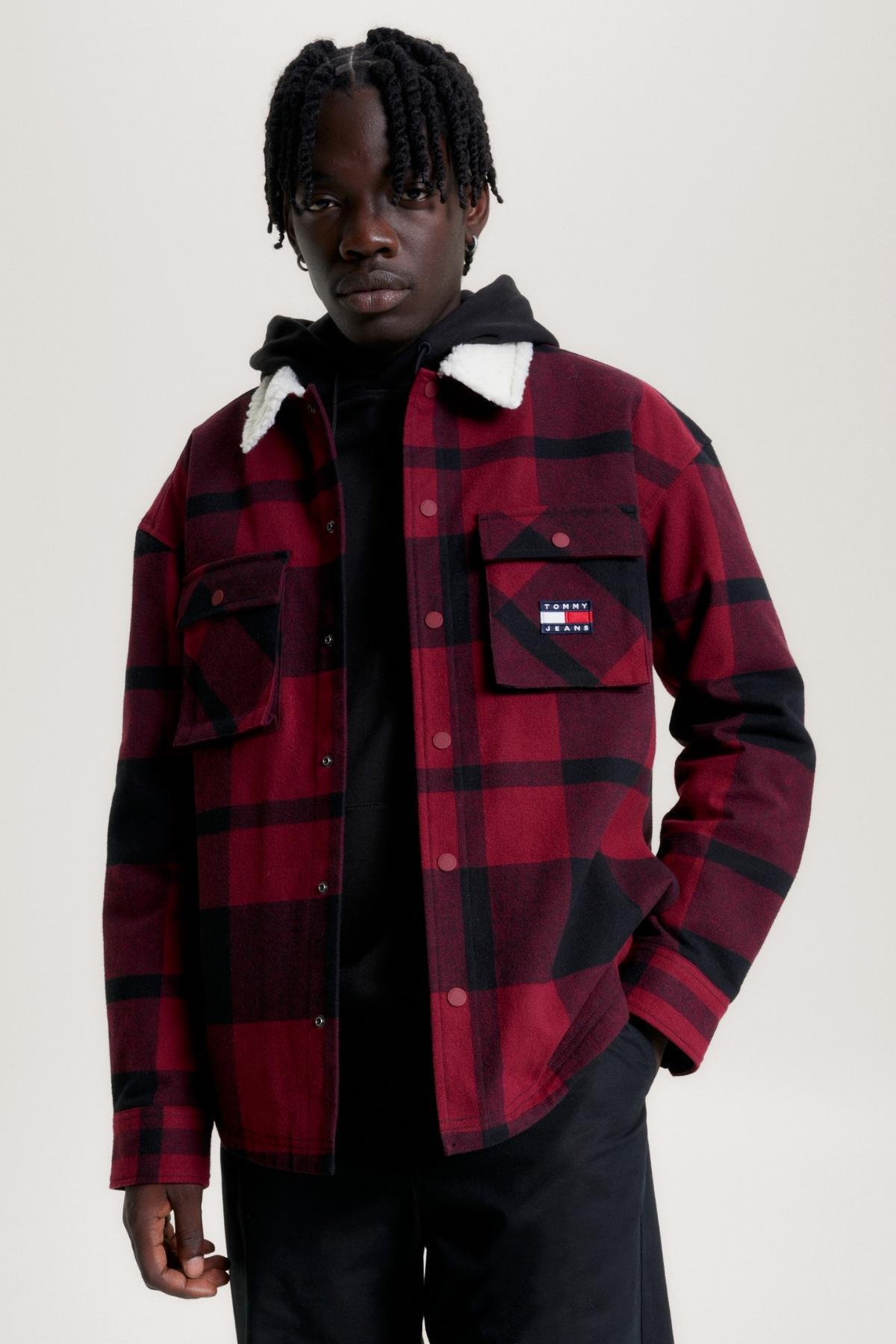 تامی هیلفیگر پیراهن مردانه طرح لوگو برند، جیبی، شرپا، یقه و دکمه سرآستین کوتاه، شرپا