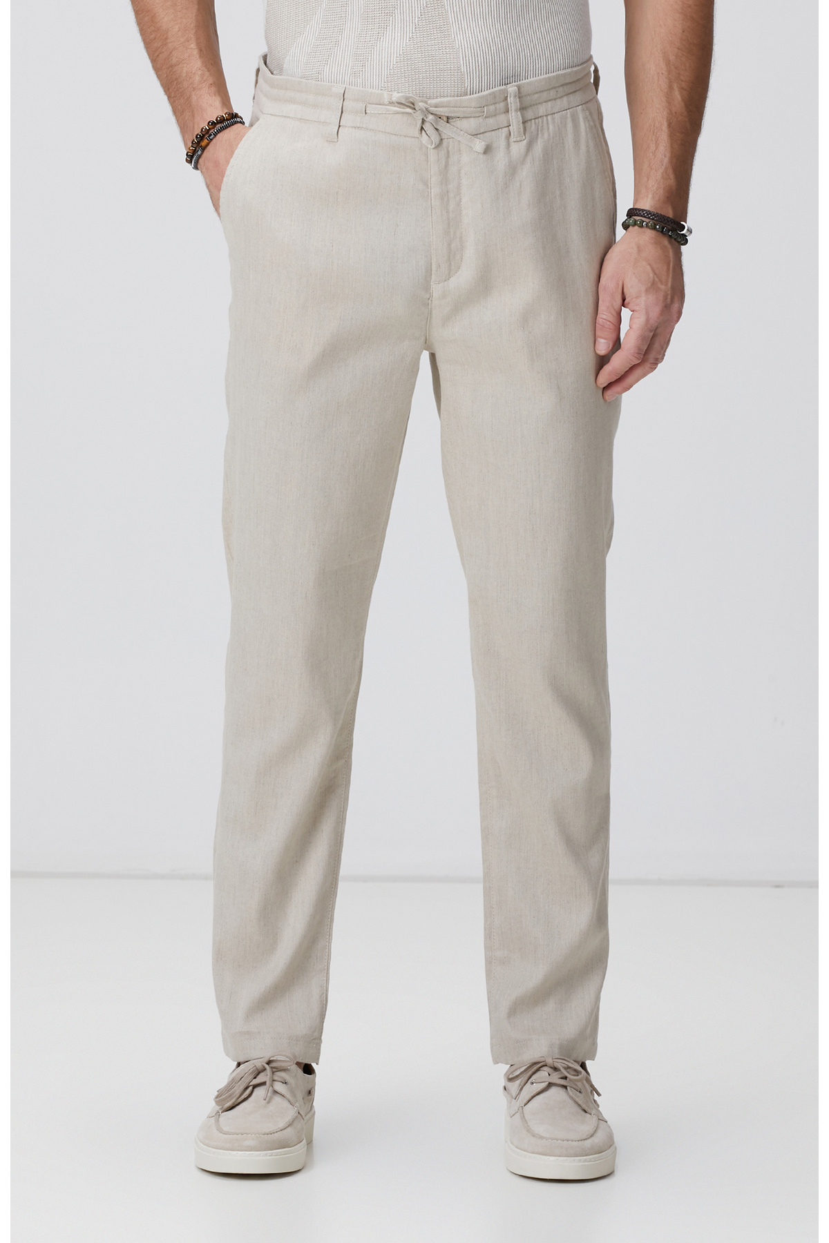 نتورک شلوار کتان سبک بژ ترکیبی