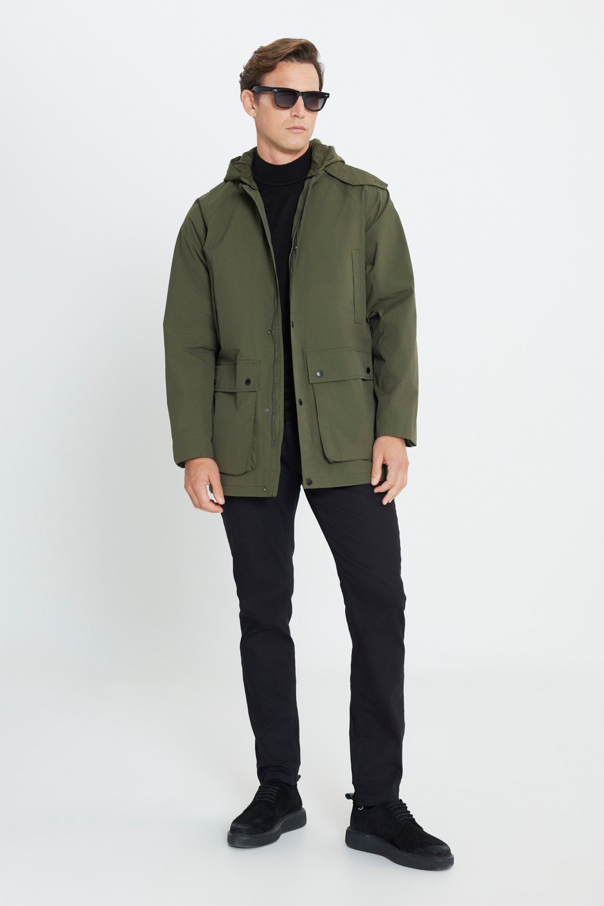 آلتین ییلدیز کلاسیکس کاپشن یقه ایستاده کلاهدار خاکی مردانه با تناسب استاندارد گرم ضد باد