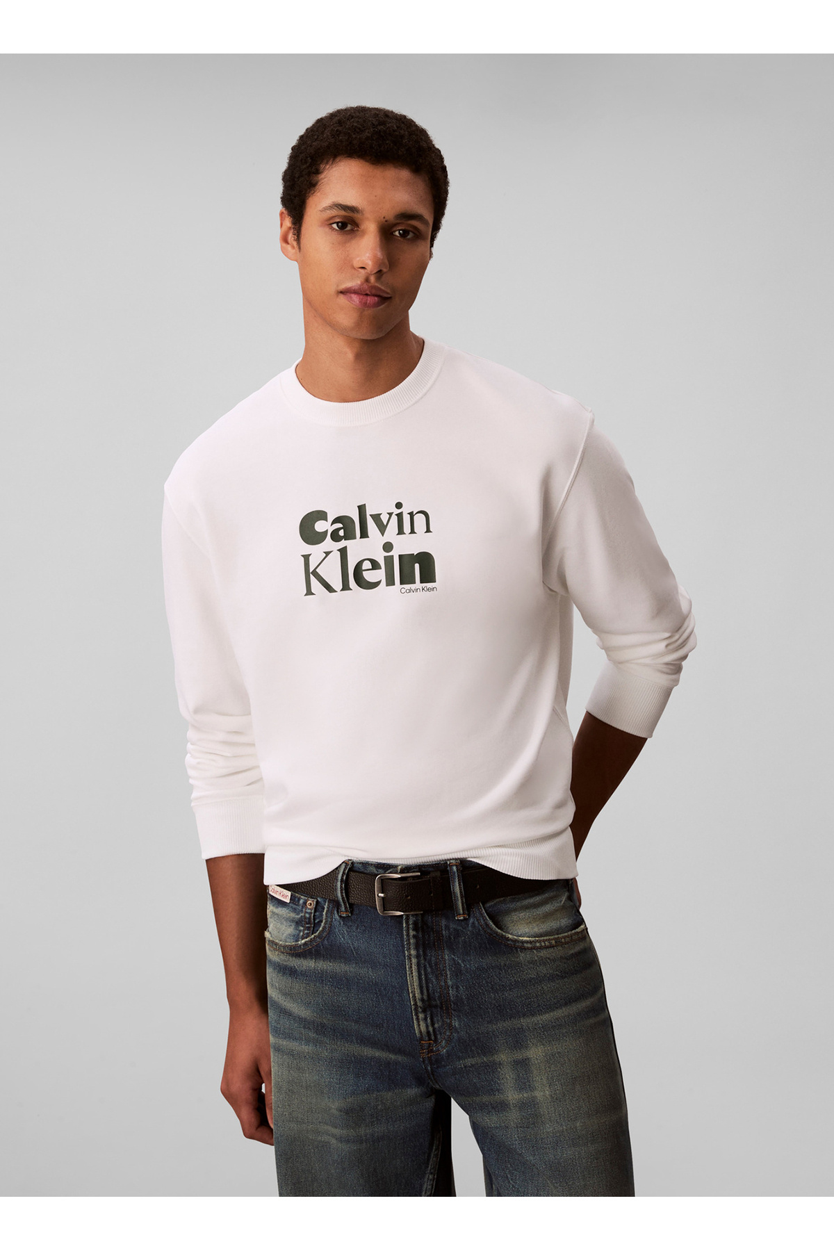 کلوین کلاین سویشرت مردانه یقه گرد سفید LV04LD242GYAF_LS EU 350TERRY CALVIN