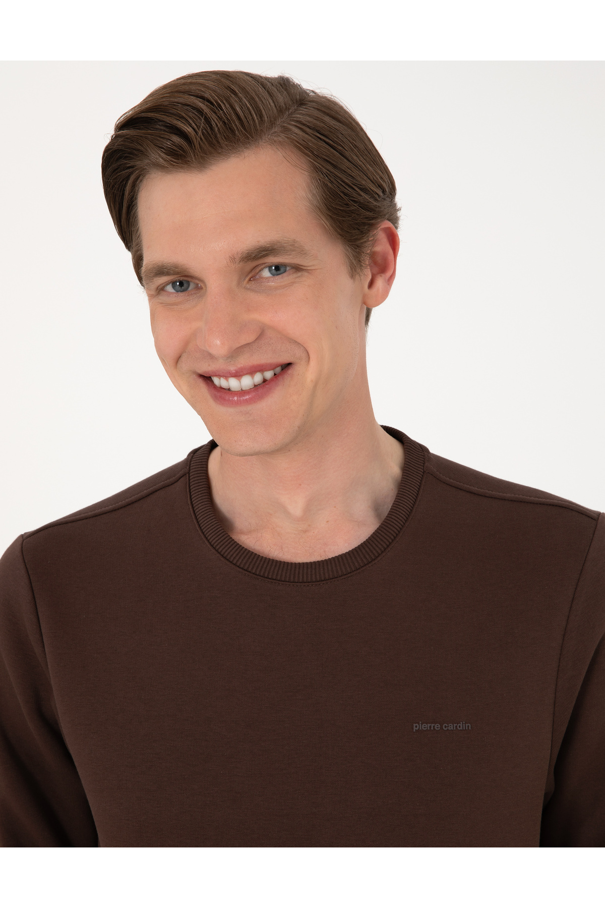 پیر کاردین سوئیشرت 50315021-VR029 با یقه خدمه با تناسب معمولی قهوه ای 3 نخی