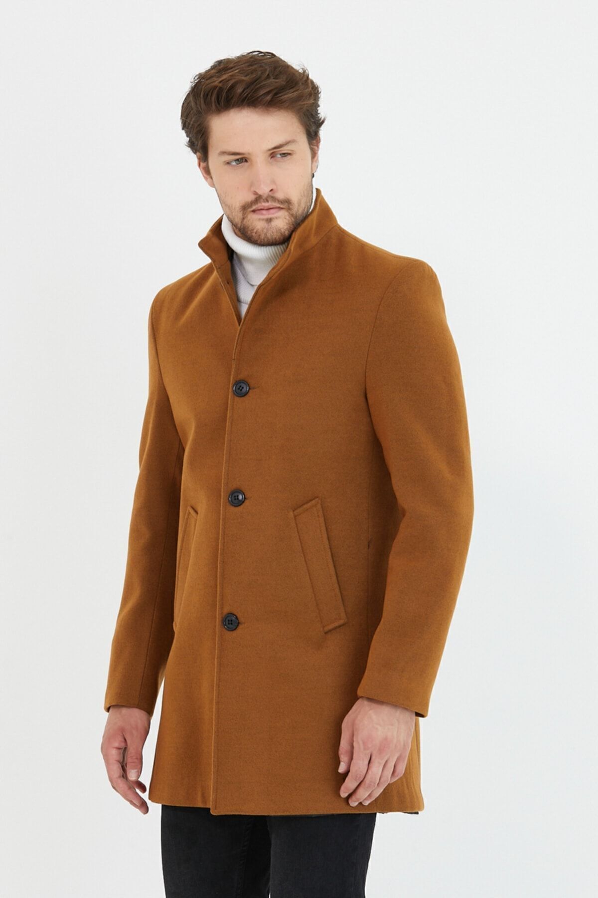 مرو لایف پالتو مردانه یقه ایستاده اسلیم کات قهوه‌ای روشن، پشمی بلند و ترکیبی از کشمیر