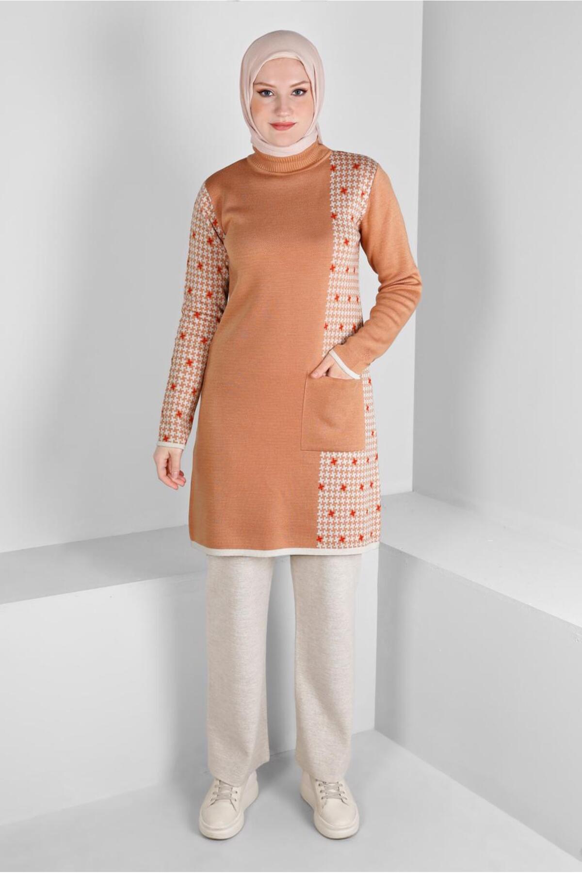 آلوینا تونیک بافتنی جیب‌دار طرح‌دار ۴۳۱۷۷