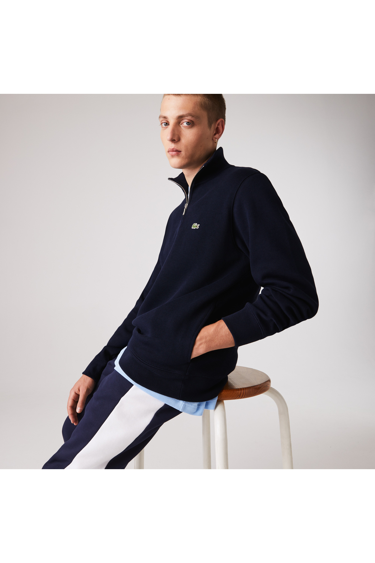 برشکا سویشرت کلاسیک فیت نیم زیپ آبی سرمه ای