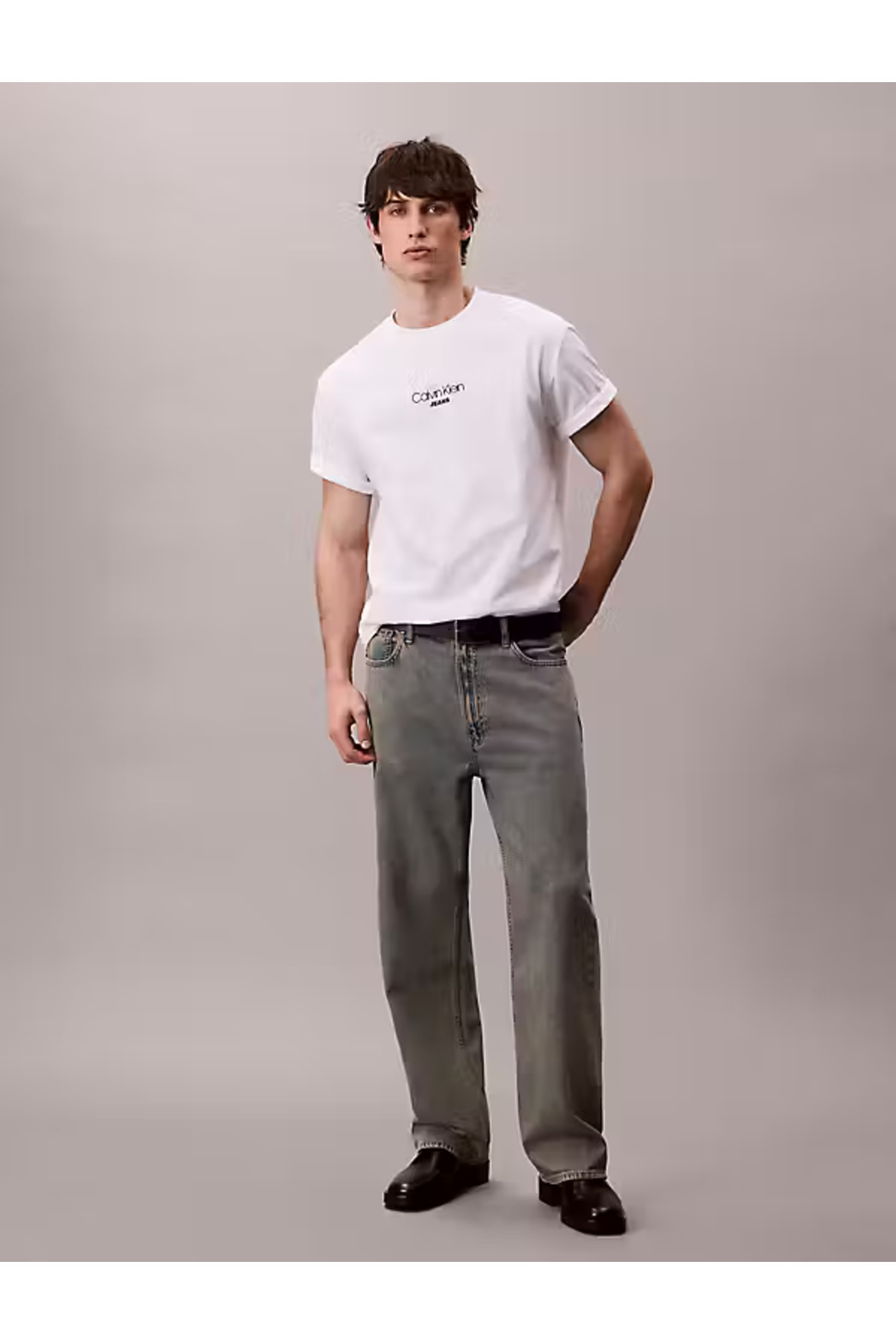 کالوین کلین تی شرت سفید گاه به گاه نخی ارگانیک لوگوی مارک مردانه LV04RC851G YAA