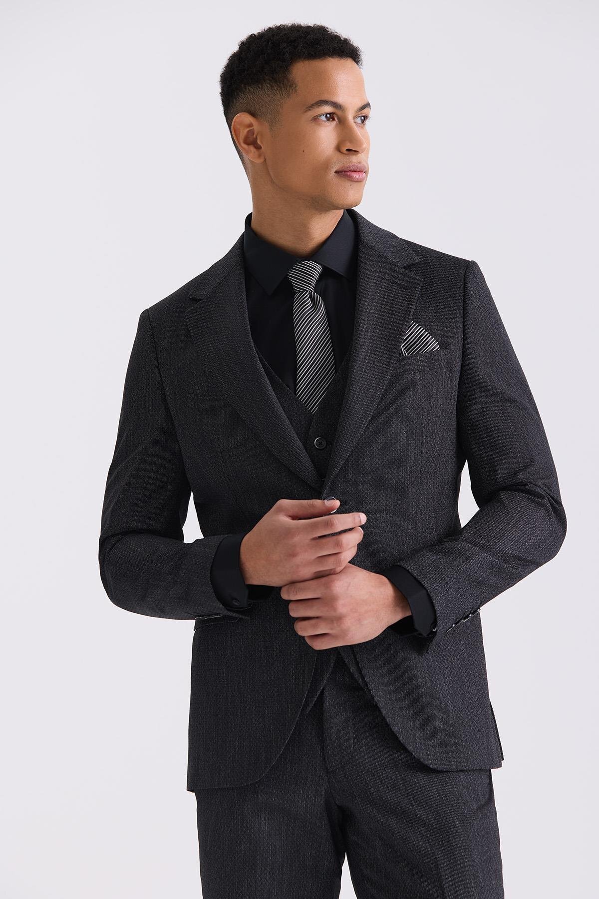 جاکامن کت و شلوار جلیقه تک یقه باریک مشکی
